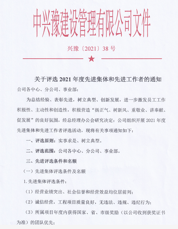 關(guān)于評(píng)選2021年度先進(jìn)集體和先進(jìn)工作者的通知