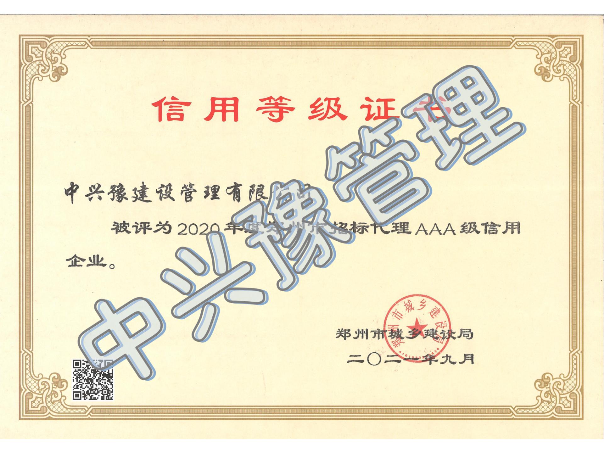 2020年度招標(biāo)代理AAA信用等級-公司榮譽(yù)