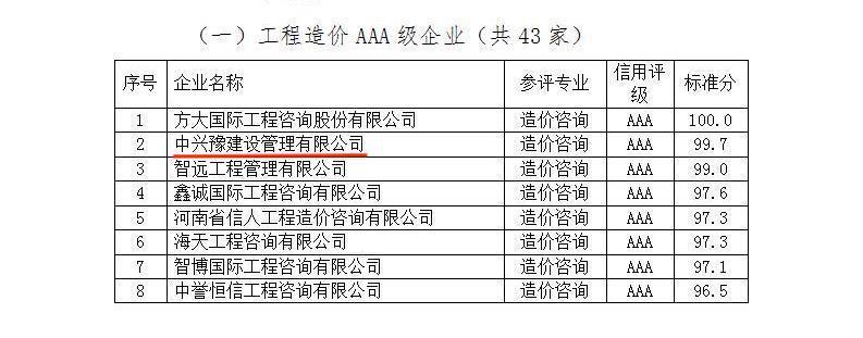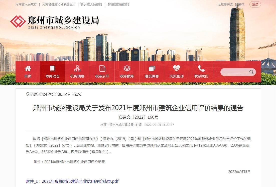 9月5日,鄭州市城鄉(xiāng)建設(shè)局公布了“鄭州市城鄉(xiāng)建設(shè)局關(guān)于發(fā)布2021年度鄭州市建筑企業(yè)信用評(píng)價(jià)結(jié)果的通告”。經(jīng)主管部門(mén)審核、信用評(píng)價(jià)成員單位共同認(rèn)定,我公司榮獲鄭州市工程造價(jià)AAA級(jí)企業(yè)、鄭州市工程招標(biāo)代理AAA級(jí)企業(yè)、鄭州市工程監(jiān)理AA級(jí)企業(yè)。