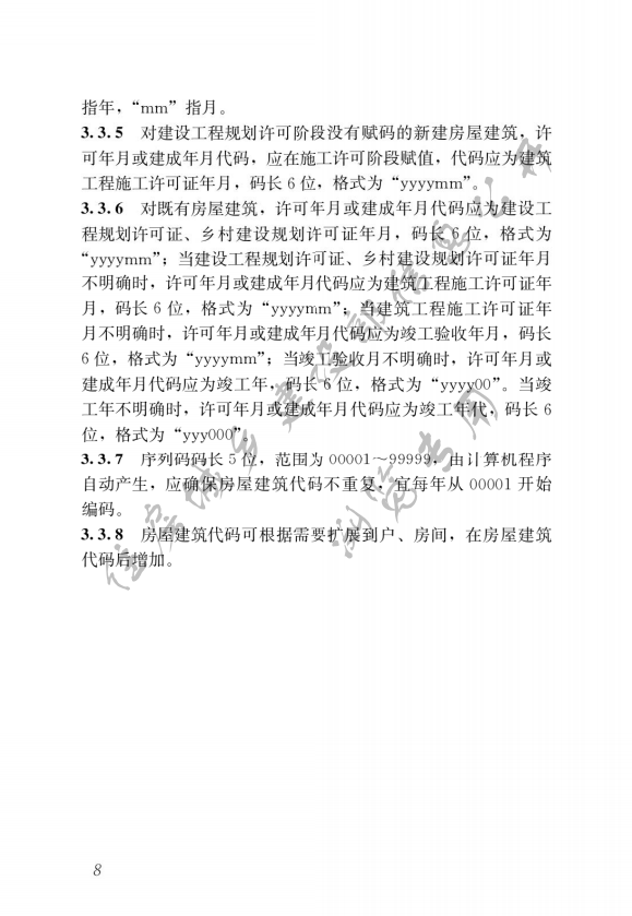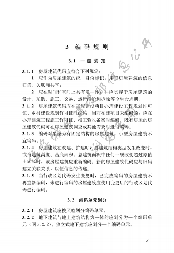 《標(biāo)準(zhǔn)》明確,房屋建筑代碼應(yīng)作為房屋建筑的統(tǒng)一身份標(biāo)識(shí),用于房屋建筑的信息歸集、關(guān)聯(lián)和共享;應(yīng)在時(shí)間和空間上具有惟一性,并應(yīng)貫穿于房屋建筑的設(shè)計(jì)、采購(gòu)、施工、交易、運(yùn)行維護(hù)和拆除等生命周期。房屋建筑代碼應(yīng)在工程建設(shè)項(xiàng)目辦理建設(shè)工程規(guī)劃許可證、鄉(xiāng)村建設(shè)規(guī)劃許可證時(shí)編碼;當(dāng)前在建項(xiàng)目未編碼的,應(yīng)在辦理建筑工程施工許可證、竣工驗(yàn)收備案時(shí)編碼。既有房屋的房屋建筑代碼可在房屋建筑調(diào)查或其他需要時(shí)進(jìn)行編碼。編碼對(duì)象應(yīng)為有固定結(jié)構(gòu)的房屋建筑,小型房屋建筑不宜編碼。房屋建筑在改建、擴(kuò)建時(shí),當(dāng)建筑結(jié)構(gòu)類型發(fā)生改變時(shí),或當(dāng)建筑高度、基底面積、總建筑面積中任何一項(xiàng)改變超過(guò)±50%時(shí),該房屋建筑應(yīng)重新編碼。新的代碼應(yīng)與舊碼建立關(guān)聯(lián)關(guān)系,以便信息的傳遞。當(dāng)行政區(qū)劃代碼發(fā)生變更時(shí),已完成編碼的房屋建筑不再重新編碼,未進(jìn)行編碼的應(yīng)使用變更后的行政區(qū)劃代碼進(jìn)行編碼。