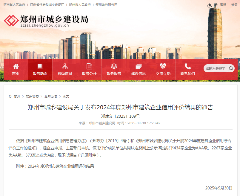 近日,鄭州市城鄉(xiāng)建設(shè)局發(fā)布了《鄭州市城鄉(xiāng)建設(shè)局關(guān)于發(fā)布2024年度鄭州市建筑企業(yè)信用評(píng)價(jià)結(jié)果的通告》中興豫建設(shè)管理有限公司榮獲“工程造價(jià)咨詢AAA級(jí)企業(yè)、招標(biāo)代理機(jī)構(gòu)AAA級(jí)企業(yè)、工程監(jiān)理AA級(jí)企業(yè)”等級(jí)榮譽(yù)。