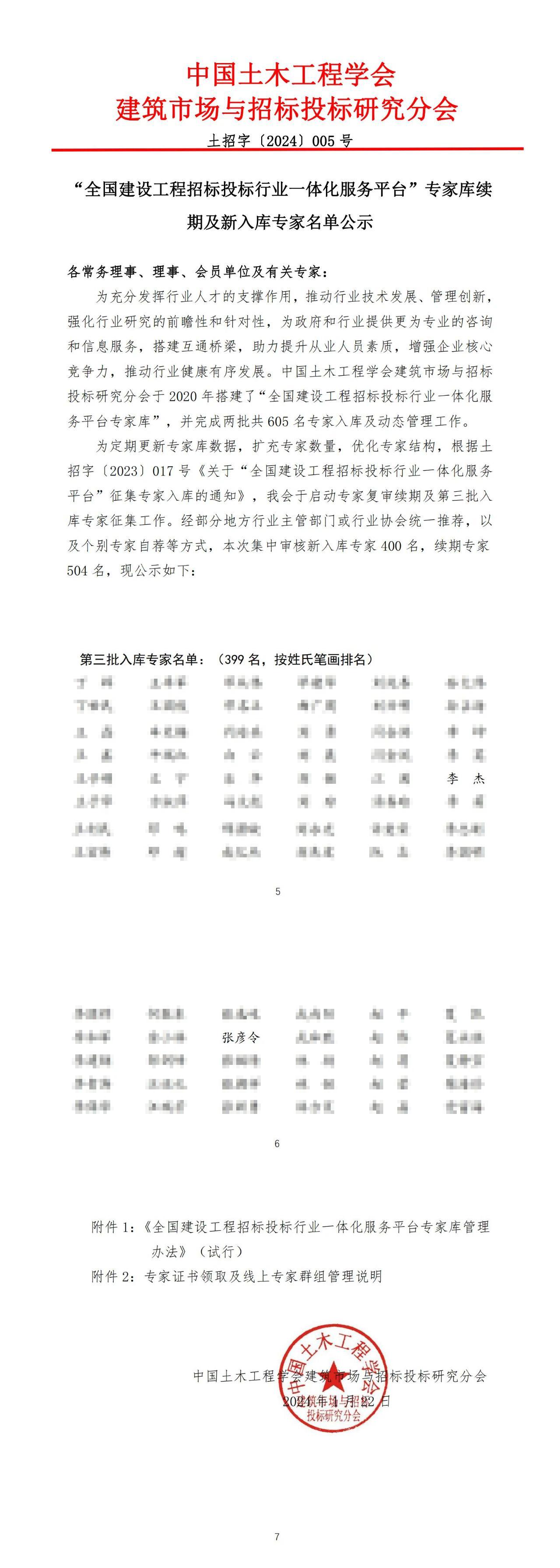 近日,中國土木工程學(xué)會(huì)建筑市場與招標(biāo)投標(biāo)研究分會(huì)公布了“全國建設(shè)工程招標(biāo)投標(biāo)行業(yè)一體化服務(wù)平臺(tái)”專家?guī)炖m(xù)期及新入庫專家名單的通知,我公司李杰、張彥令2名專家順利入圍專家?guī)臁?/span>