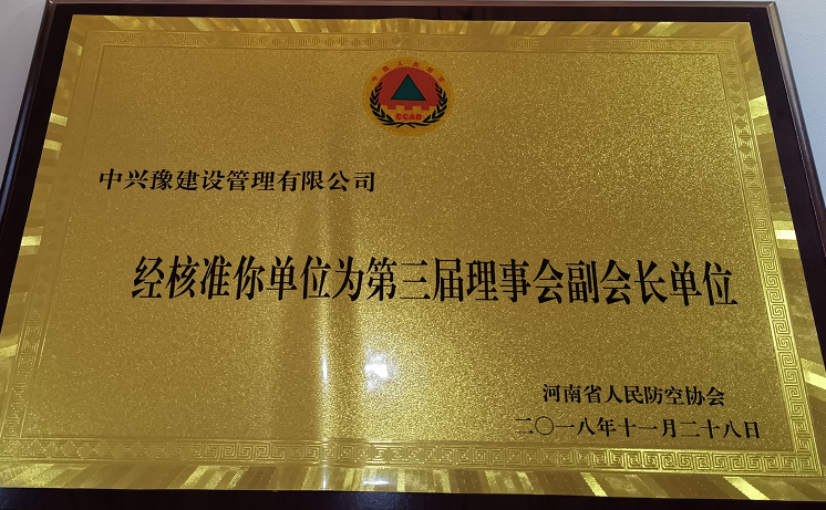 河南省人民防空協(xié)會第三屆理事會副會長單位-會員資格