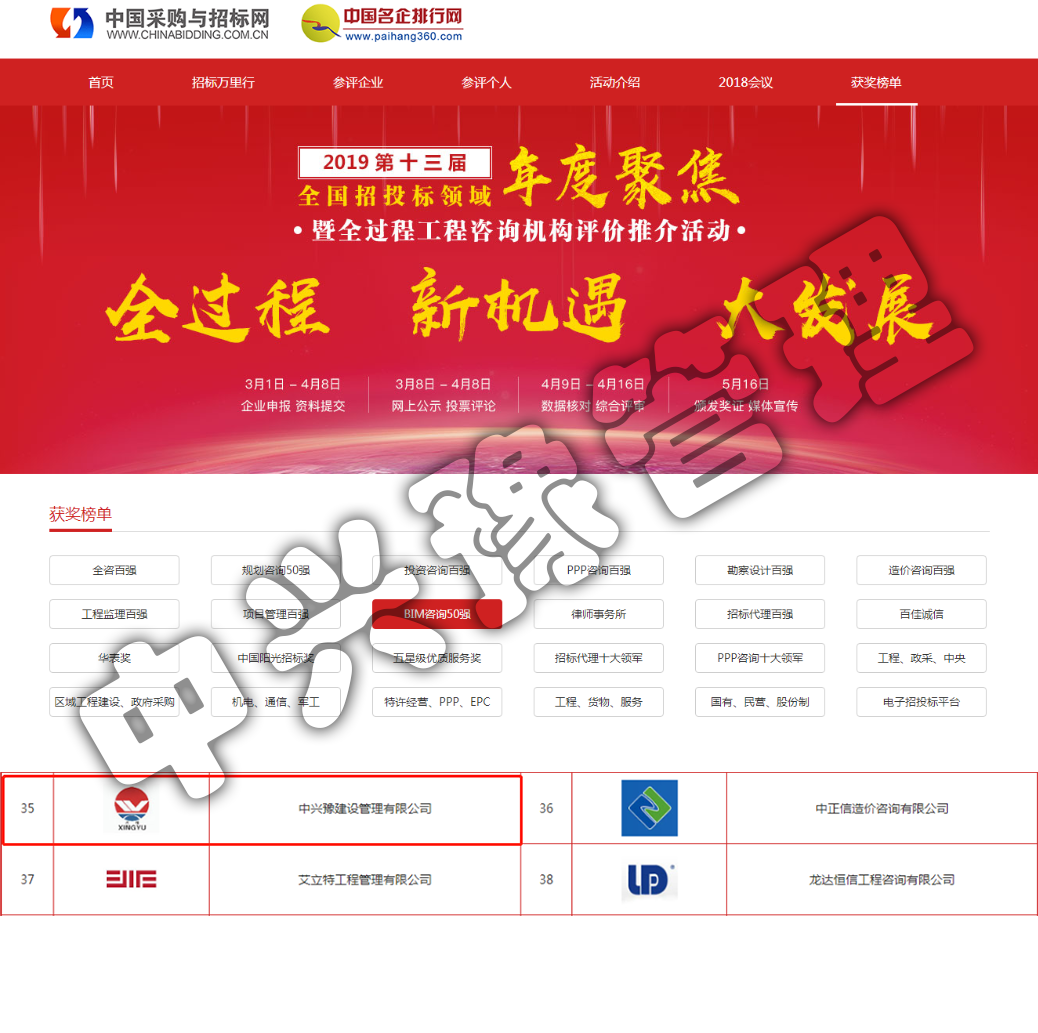 2018年度全國(guó)BIM造價(jià)咨詢50強(qiáng)企業(yè)-公司榮譽(yù)