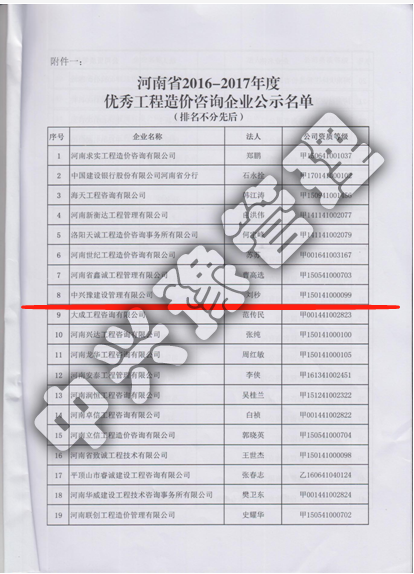 2016-2017年優(yōu)秀造價企業(yè)-公司榮譽(yù)