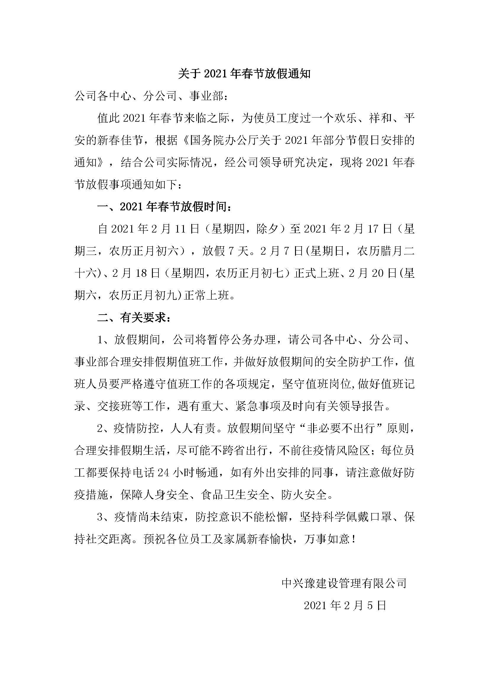2021春節(jié)放假通知