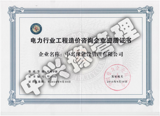 甲級電力行業(yè)造價咨詢-公司資質(zhì)