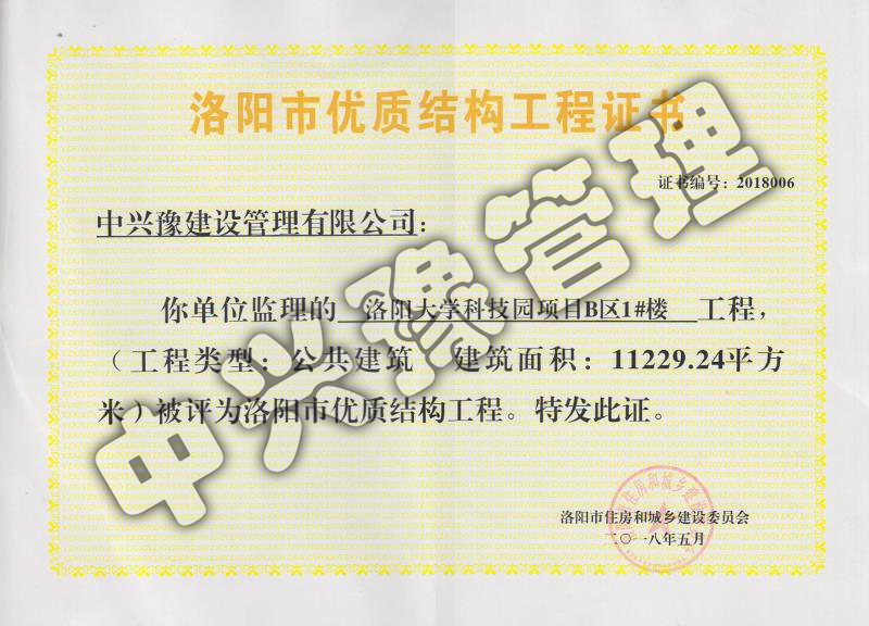 2018年洛陽市優(yōu)質結構工程-獲獎項目