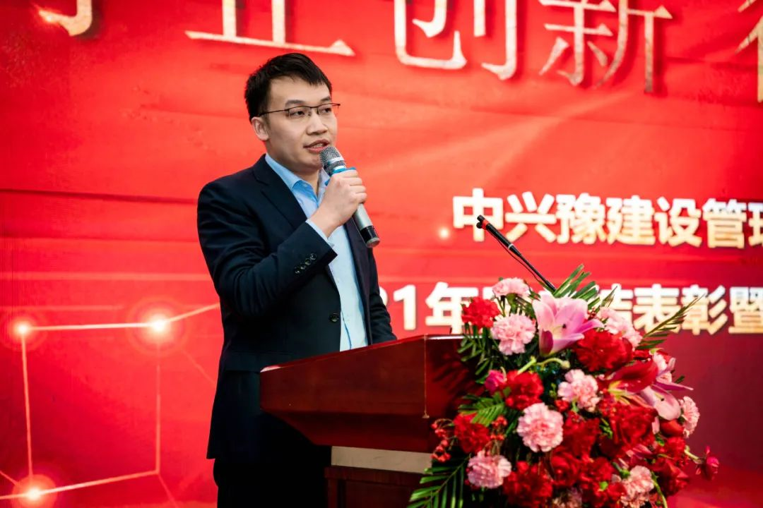 公司副總裁王明軍宣讀《關(guān)于對(duì)獲得2021年度工程質(zhì)量獎(jiǎng)和榮譽(yù)獎(jiǎng)的項(xiàng)目部表彰獎(jiǎng)勵(lì)的決定》、《關(guān)于表彰2021年度先進(jìn)集體和先進(jìn)工作者的決定》,并號(hào)召全體員工要以受到表彰的先進(jìn)集體和先進(jìn)工作者為榜樣,在學(xué)習(xí)先進(jìn)中提升自我,在對(duì)標(biāo)先進(jìn)中持續(xù)奮斗,在爭(zhēng)當(dāng)先進(jìn)中擔(dān)當(dāng)作為,為中興豫的美好明天貢獻(xiàn)力量!