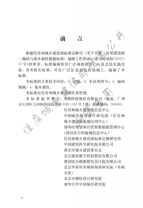 《標(biāo)準(zhǔn)》主要包括總則、術(shù)語(yǔ)和符號(hào)、編碼規(guī)則、基本屬性4項(xiàng)技術(shù)內(nèi)容,適用于房屋建筑編碼、基本屬性采集、數(shù)據(jù)處理和信息共享應(yīng)用,不適用于構(gòu)筑物。