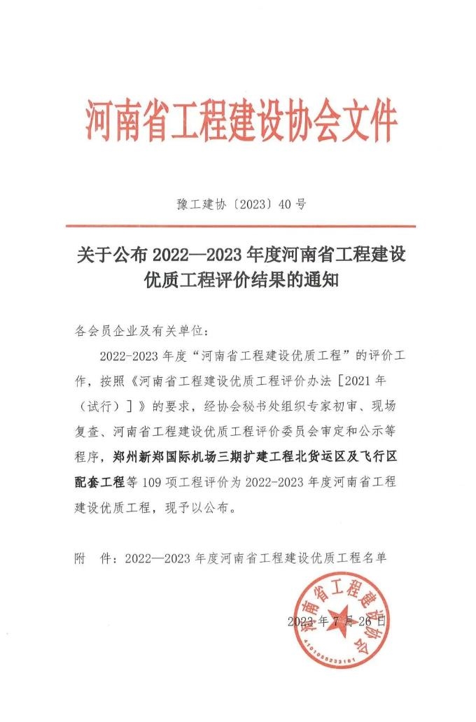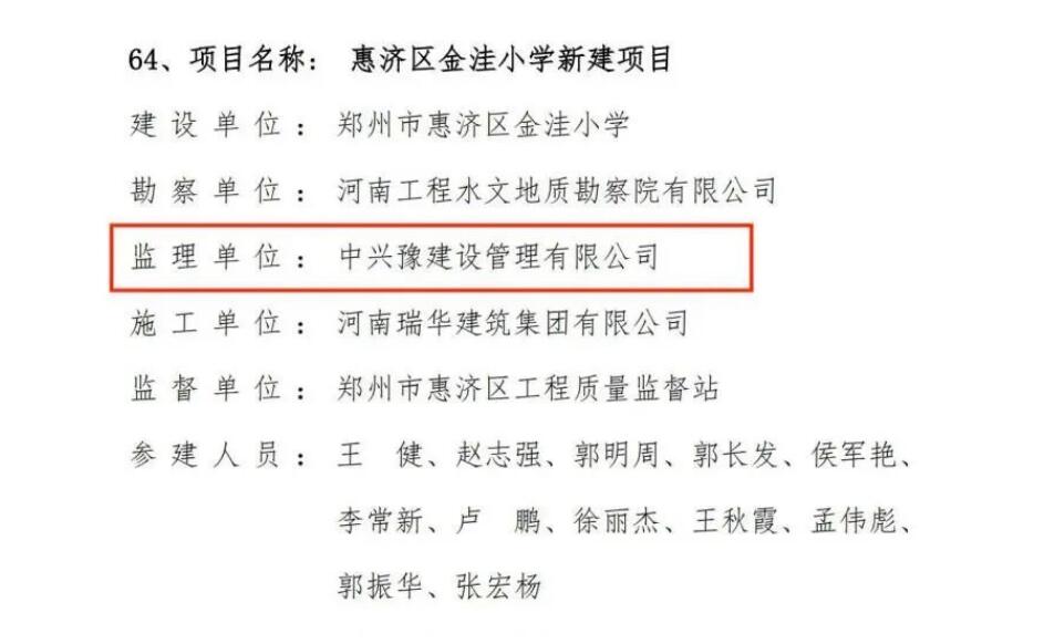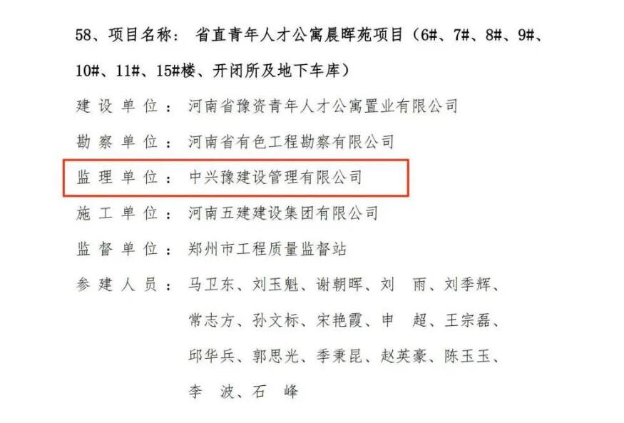 近日,河南省工程建設(shè)協(xié)會(huì)公布了“2022-2023年度河南省工程建設(shè)優(yōu)質(zhì)工程評(píng)價(jià)結(jié)果的通知”,由中興豫建設(shè)管理有限公司擔(dān)任監(jiān)理單位的“省直青年人才公寓晨暉苑項(xiàng)目設(shè)計(jì)施工總承包一標(biāo)段”、“省直青年人才公寓晨暉苑項(xiàng)目(6#、7#、8#、9#、10#、11#、15#樓、開閉所及地下車庫(kù))”、“惠濟(jì)區(qū)金洼小學(xué)新建項(xiàng)目”,共三項(xiàng)目齊上榜,紛紛獲得省級(jí)榮譽(yù)。