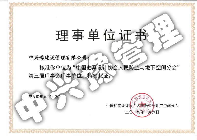 “中國勘察設計協(xié)會人民防空與地下空間分會”第三屆理事會理事單位-會員資格