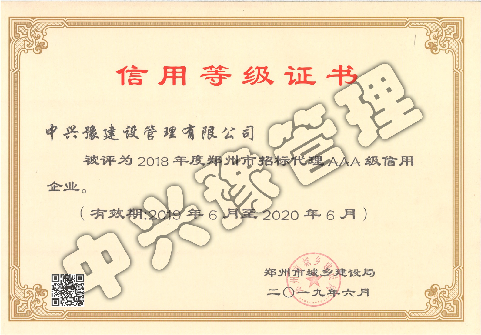2018年度鄭州市招標代理先進單位-公司榮譽