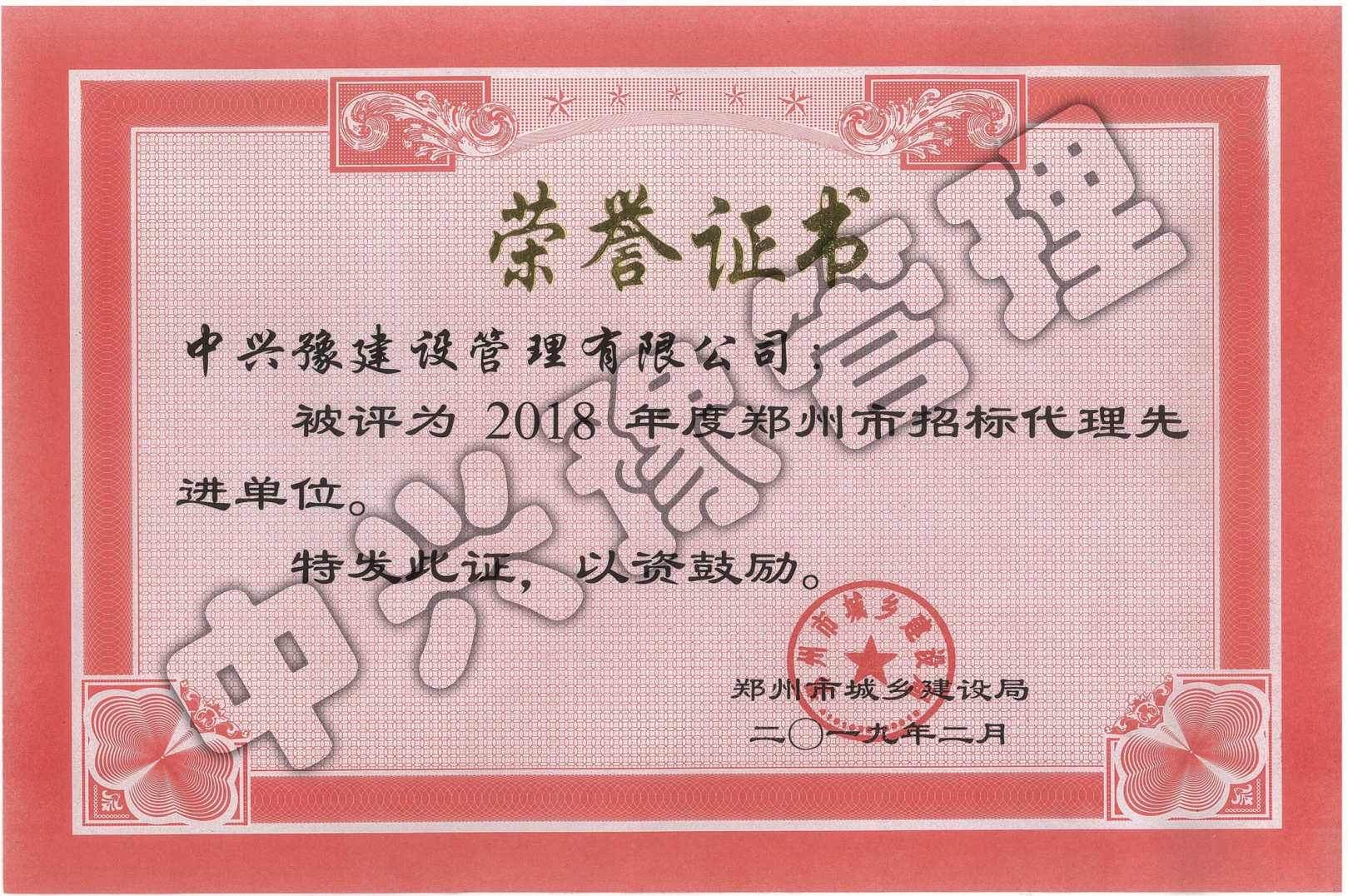 2018年度鄭州市招標(biāo)代理先進(jìn)單位-公司榮譽(yù)